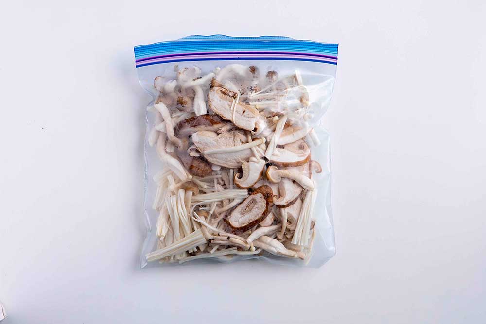 ちなみにきのこ類は全般的に傷むのが早いので、少量ずつ残ったら合わせてミックス冷凍しておくと便利。凍ったまま取り出せるので、ホイル焼きやハヤシライス、きのこパスタなどに使えます。保存期間は1か月。