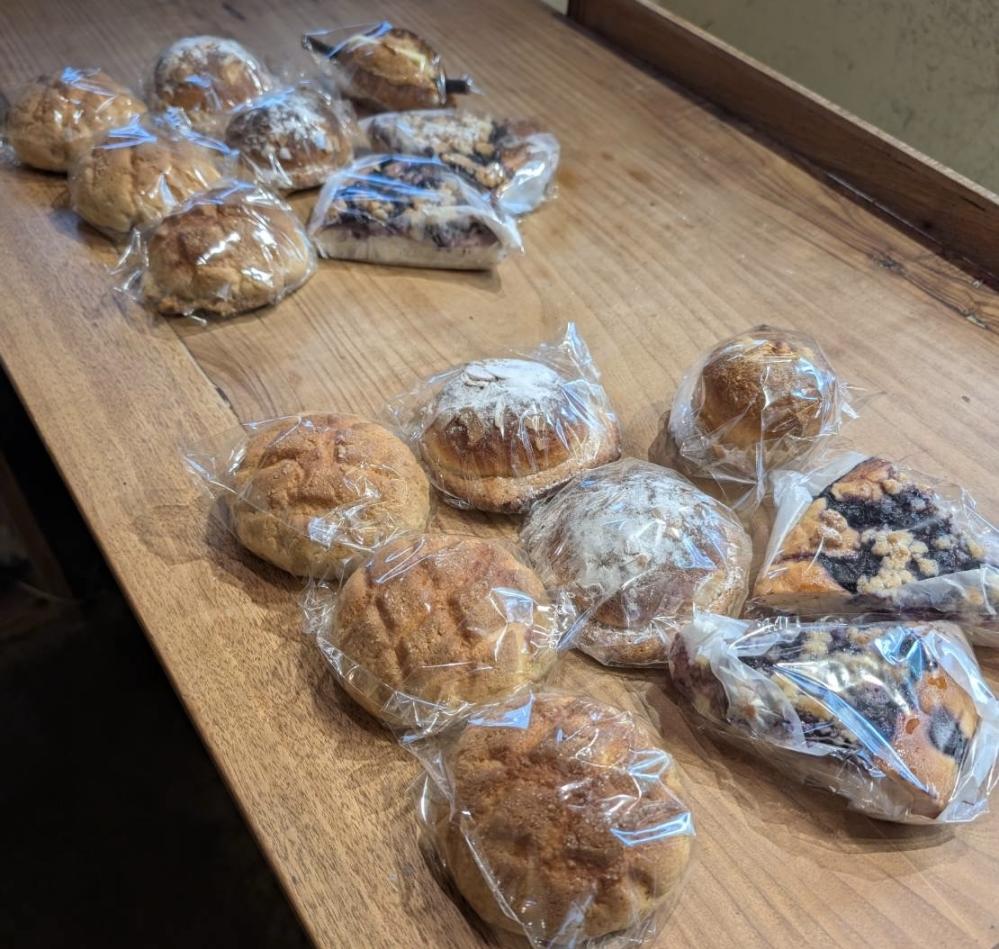 メロンパン×3、塩バターアーモンド×2、 ブルーベリークランブル×2などおやつパンを中心に8個入り |