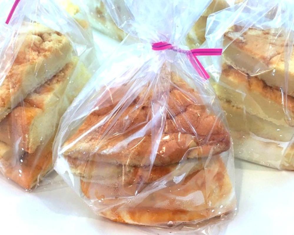 ただいまの時期クリスマスケーキの増産に伴い、毎日沢山の切り落としが出ております。 おやつにいかがでしょうか。 3袋単位でお得な価格となります。 3袋(個数1でご購入下さい。)で200円 6袋(個数2でご購入下さい。)で400円 9袋(個数3でご購入下さい。)で600円 12袋(個数4でご購入下さい。)で800円 ※大量購入または、お受け取りが夕方など店内が込み合うお時間はお時間を頂戴する場合がございますので、ご了承下さい。 |
