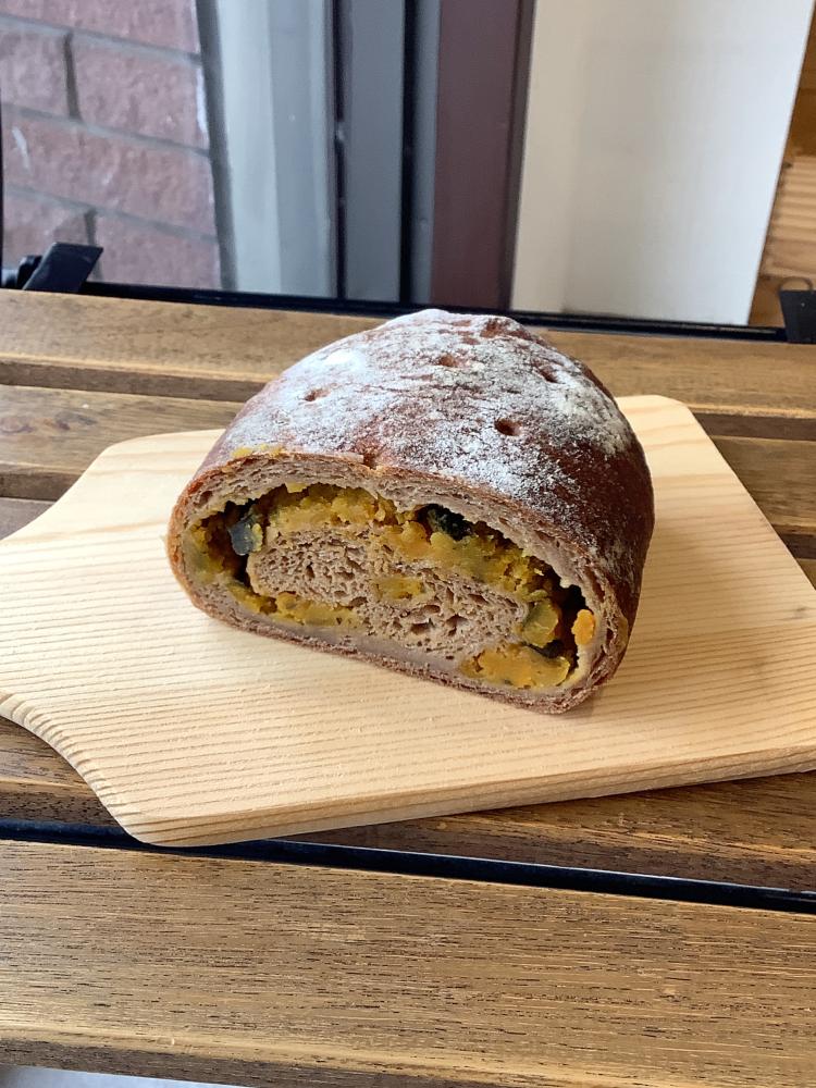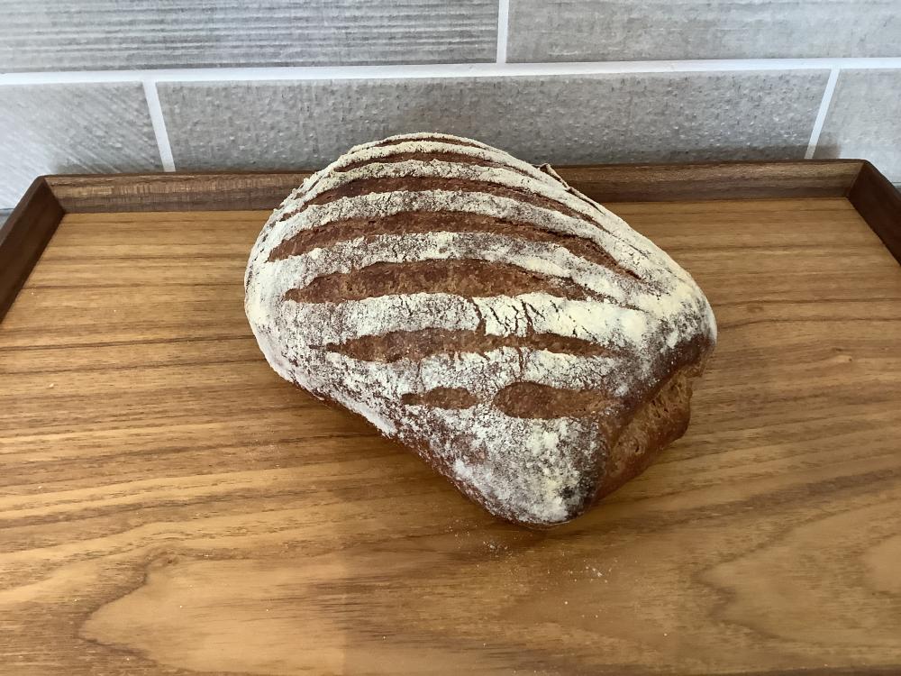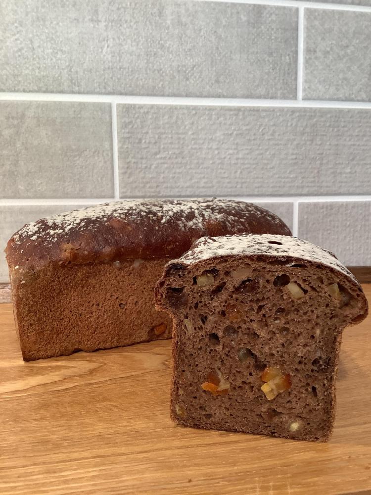 レーズン、オレンジピール、クルミ入りの食パンです。 |