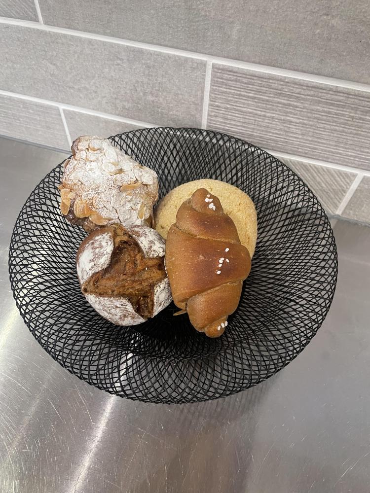 タベスケ限定セットです。 重複無し7種類+食パン1斤です。 本日焼きのパンが1個あたり¥125(税込)のお得セット。 タベスケセット現金でお支払いお願いします。 |