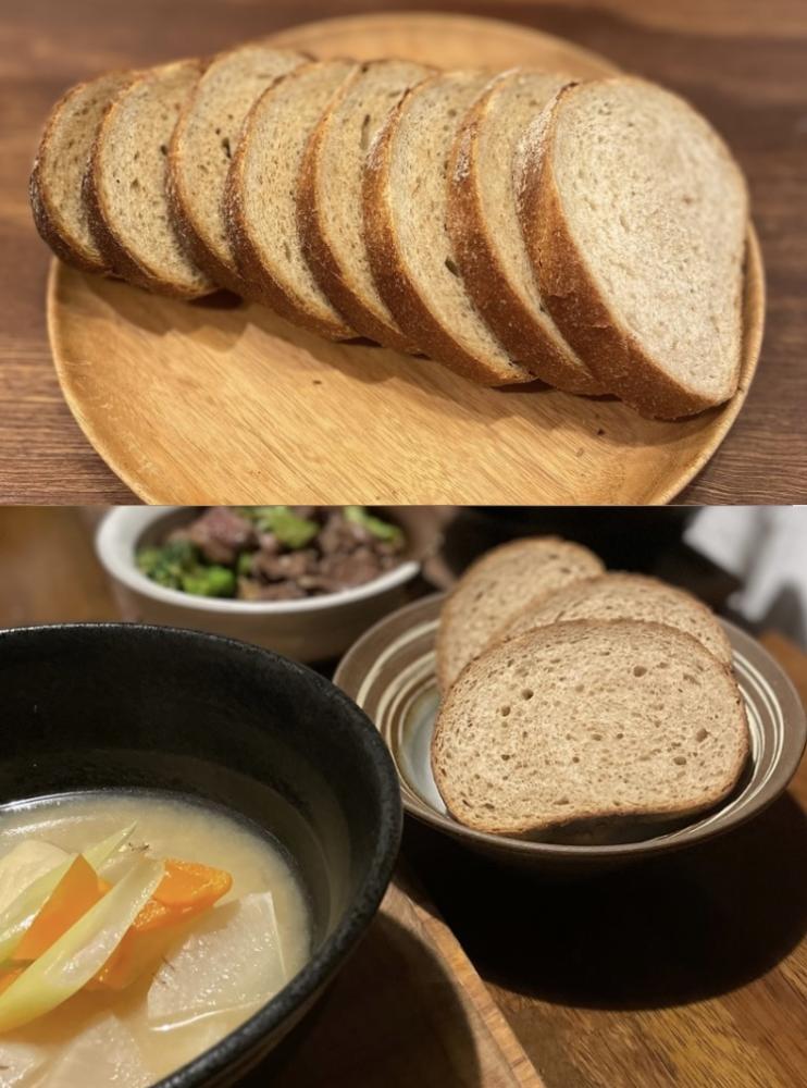 一見合わせづらそうなイメージのあるライ麦パンですが、実は日常の家庭料理にもぴったり。 気軽にいろいろな料理と組み合わせてみてくださいね。 (写真はある日の我が家の夕食です) |