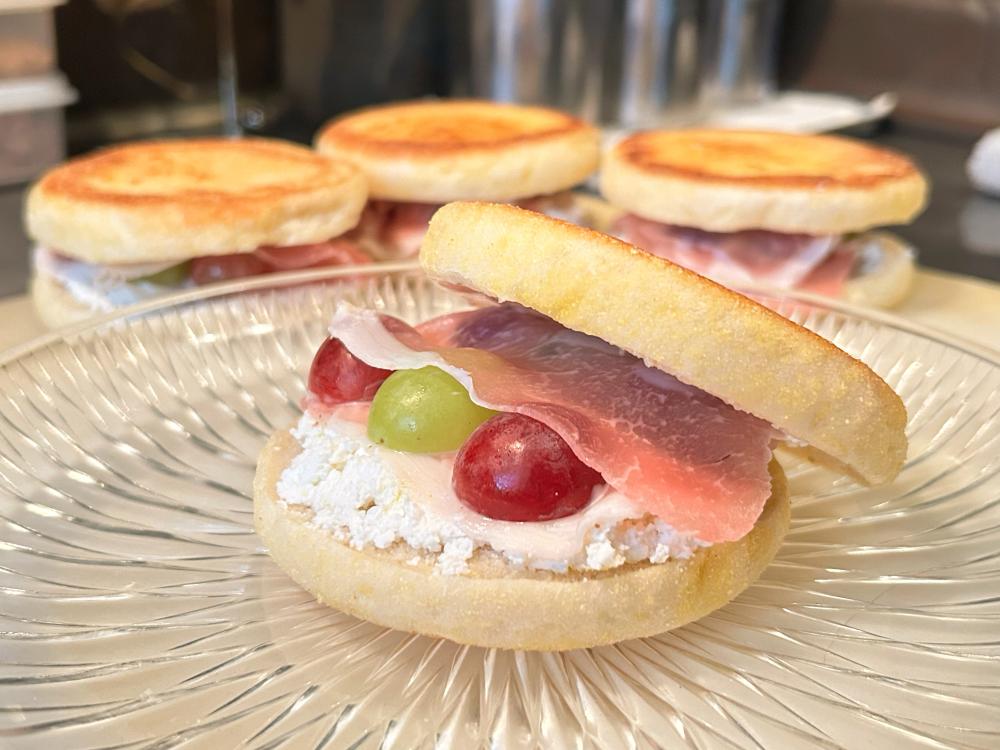 葡萄と生ハム,カッテージチーズのイングリッシュマフィン650円(