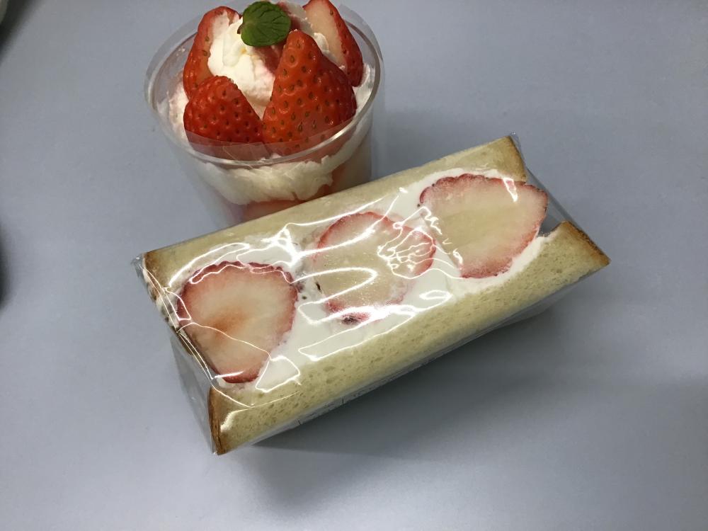 当日賞味の商品のお得なセットです。ミニいちごパフェといちごサンドひとつずつ入ってます |