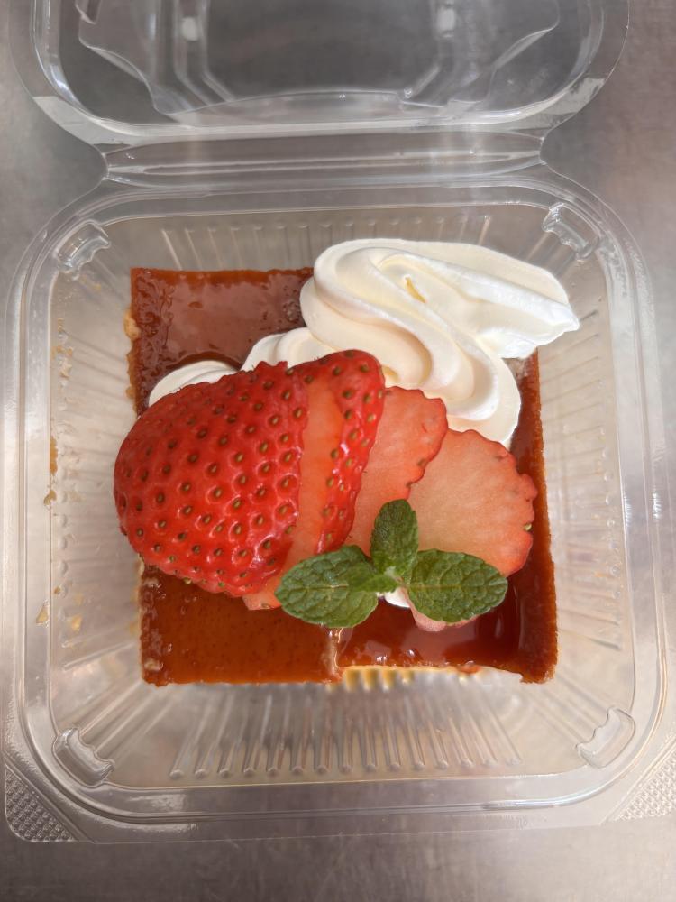 プリンの切れはじです。周りなので少し舌触りの悪いところもあります。味は変わりません。 |