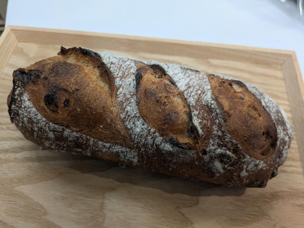 前日焼成したレーズンブレッドになります。 柔らかを保つために1本でのご提供になります。 |